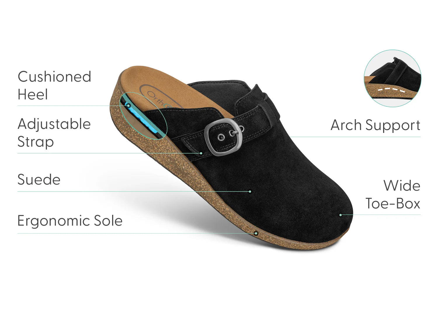 Our essential clog in soft, water-repellant suede takes any season in style. A pressure-free fit and adjustable...