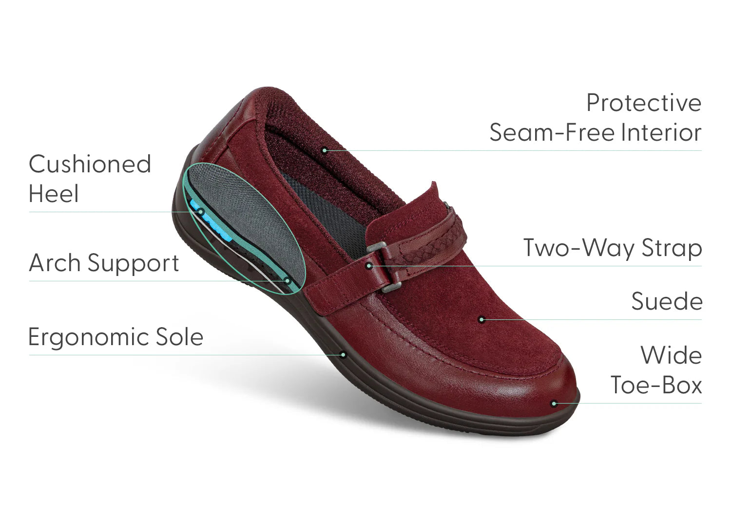 With the supple leather Chelsea, you'll never sacrifice foot comfort and health to dress well. The adjustable strap opens on either side and the tongue flips up, to make getting in easy. Therapeutic, adjustable support, a padded interior and roomy design prevent foot pressure, while advanced cushioning and walking ergonomics align, stabilize, and soften every step.