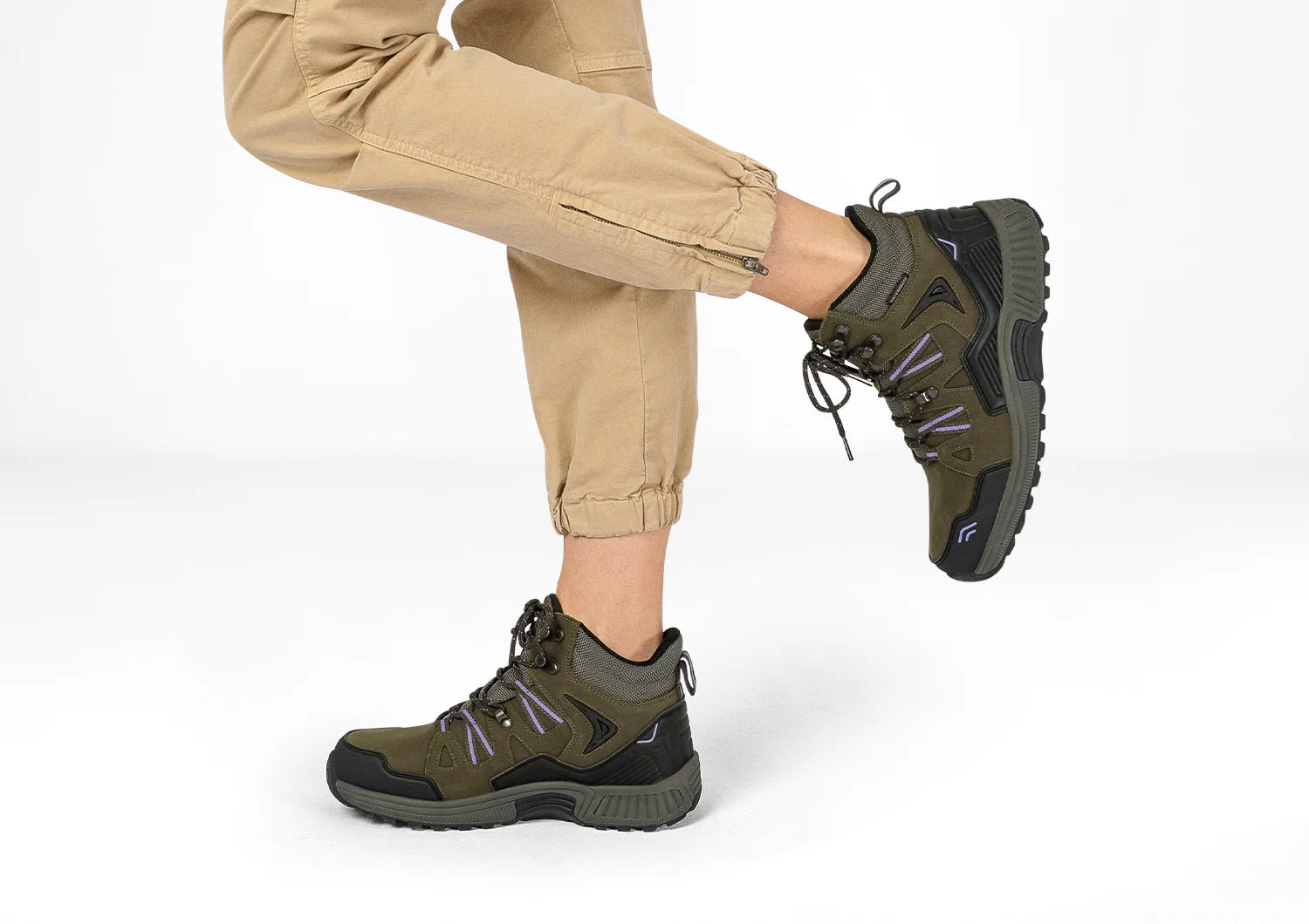Go the extra mile in ultimate comfort with the all-terrain, all-weather capabilities of this high-performance mountain boot, featuring premium waterproof leather and moisture-venting membrane. Adjustable Ortho-Cushion Support, a wide toe box, extra depth and a soft interior keep sensitive feet and conditions free of pressure and irritation for extended trekking.