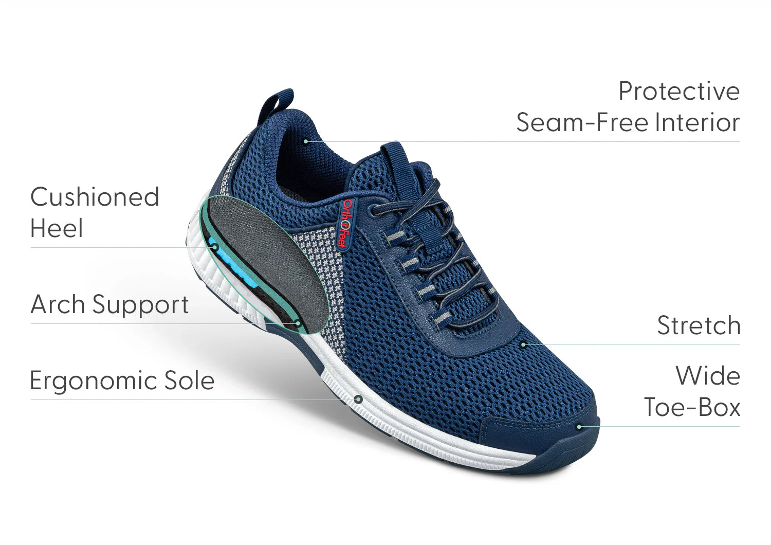 Cover more miles with less foot pain in this light, bio-engineered comfort sneaker, featuring breathable stretch knit fabric and the easy walking, Ortho-Cushion™ System. Edgewater's upper takes the pressure off sensitive conditions with a relaxed personal fit, extra depth and a soft interior. Four available widths and adjustable arch support make every advantage yours.