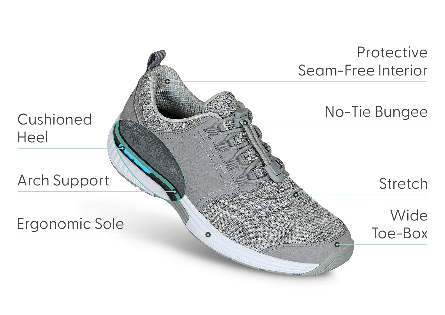 Meet your new partner in keeping active, with a stretchable fabric upper and no-tie bungee lace that make getting into your sneakers as pain-free as wearing them. Our Ortho-Cushion™ System absorbs impacts and smoothly propels your stride, while the padded, breathable upper hugs every curve, bump and bone of your foot, for a relaxed pressure-free fit.