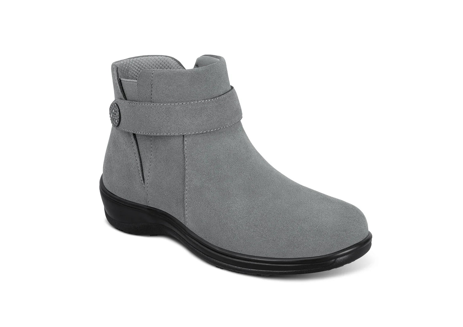 Heather elevates the classic Chelsea bootie with thoughtful comfort touches that make all the difference. This sophisticated suede ankle boot features a decorative button strap with hidden hook-and-loop adjustability, ensuring a perfect fit that moves with you. The convenient inside zipper means easy on and off, while the sleek silhouette transitions effortlessly from daytime errands to evening gatherings. With Heather, you'll enjoy the timeless appeal of a Chelsea boot enhanced with the all-day comfort your feet deserve – because style should never come at the cost of feeling wonderful.