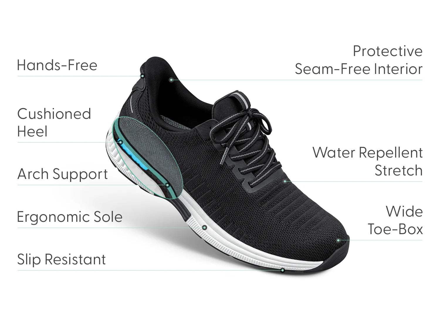 Kita's clean sporty design features our revolutionary hands-free slip-on technology. Tie the laces once, then never bend...