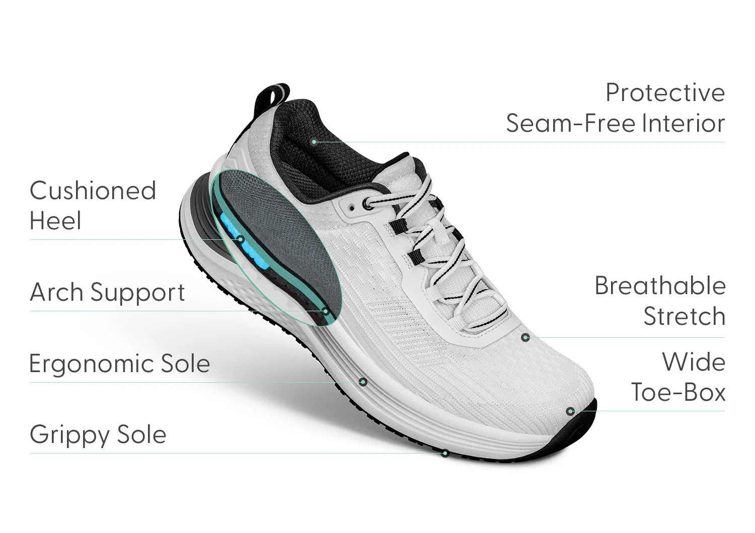 Get ready for podiatrist-recommended comfort that's born to run. From the lightweight breathable nylon upper to the stable, high traction outsole, Relay keeps your mobility in the lead. Leave pain behind with a heel-to-toe max cushioned sole and a near custom fit, while the Ortho-Cushion™ System offloads pressure and aligns ergonomic support for every stride.