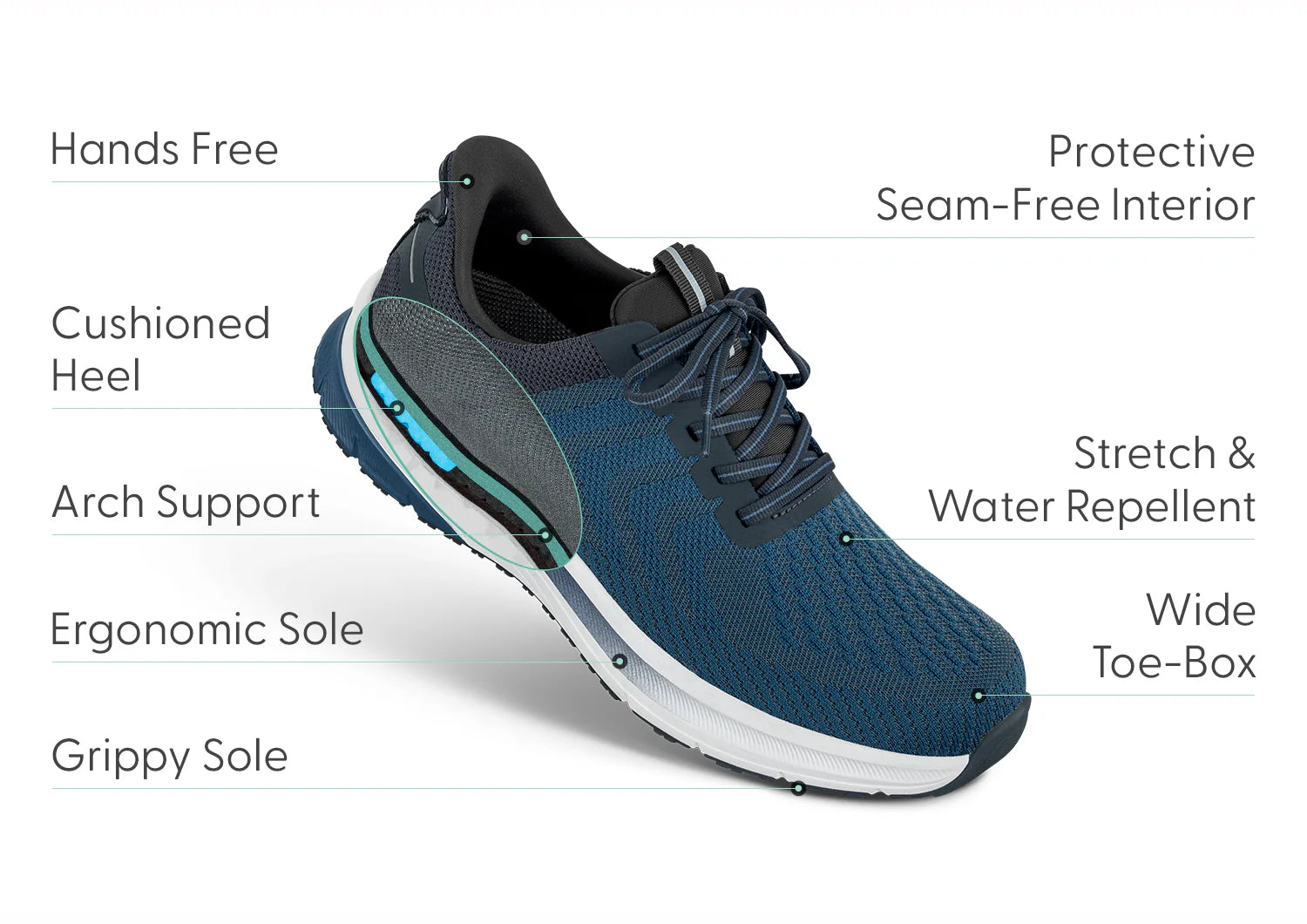 It's ready, set, go & for all day comfort in modern sneaker style. Our patented hands-free, slip-on technology means no time bent over to tie the laces. Water-repellent stretch uppers take the pressure off every curve and bump of your feet, while the advanced, customizable Ortho-Cushion™ System takes the pain out of every step, to always keep your healthy mobility on track.